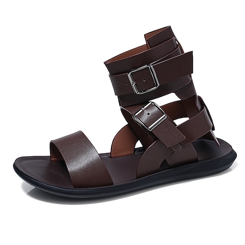 sandali da gladiatore da uomo in similpelle marrone – design aperto con cinturino regolabile, suola comoda per abbigliamento casual e outdoor