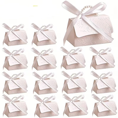 50 pezzi di scatole regalo di caramelle a tema matrimonio per San Valentino, bomboniere, scatole decorative a forma di cuore, fiocco decorativo, finitura per Natale e Halloween.