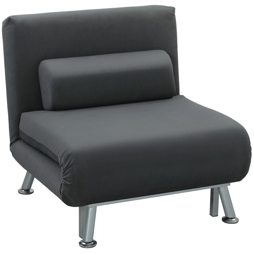 Homcom Poltrona Letto Moderno 3 in 1 con Schienale Regolabile e Cuscino imbottitura, in Tessuto Effetto Lino e Acciaio, Grigio Scuro Aosom Italy