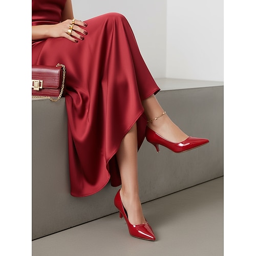 scarpe da donna con tacco a spillo in vernice rossa, eleganti scarpe da ufficio e da sera