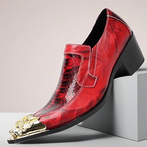 scarpe eleganti da uomo rosse lucide con puntale dorato, scarpe formali eleganti per matrimoni e riunioni formali
