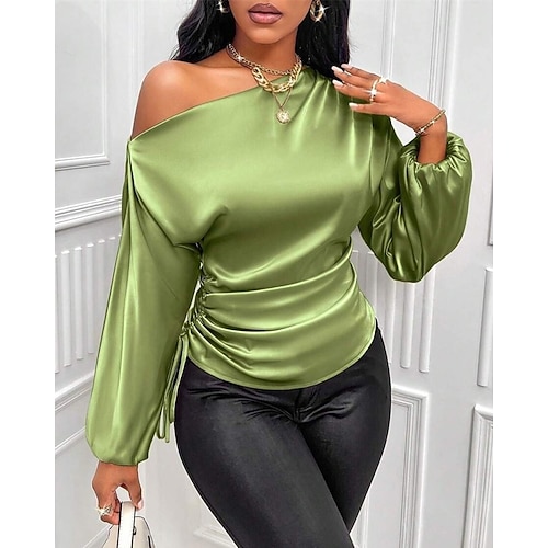 Per donna Camicia Elegant Elegante Raso/Satin Semplice Elegante Casual Manica Lunga Top con spalle scoperte Top Regolari Quotidiano Uscire Asimmetrico Nero Verde Primavera Autunno