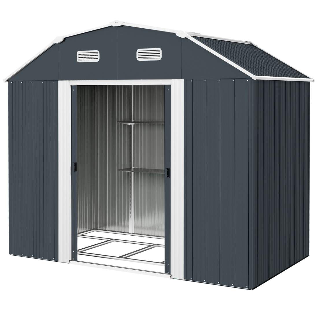 Tool Shed Steel 2,7M² Työkaluvaja Uv-Suoja Puutarhakaappi 2 Liukuovea Hyllyperustus Tummanharmaa 238X132X198,5Cm
