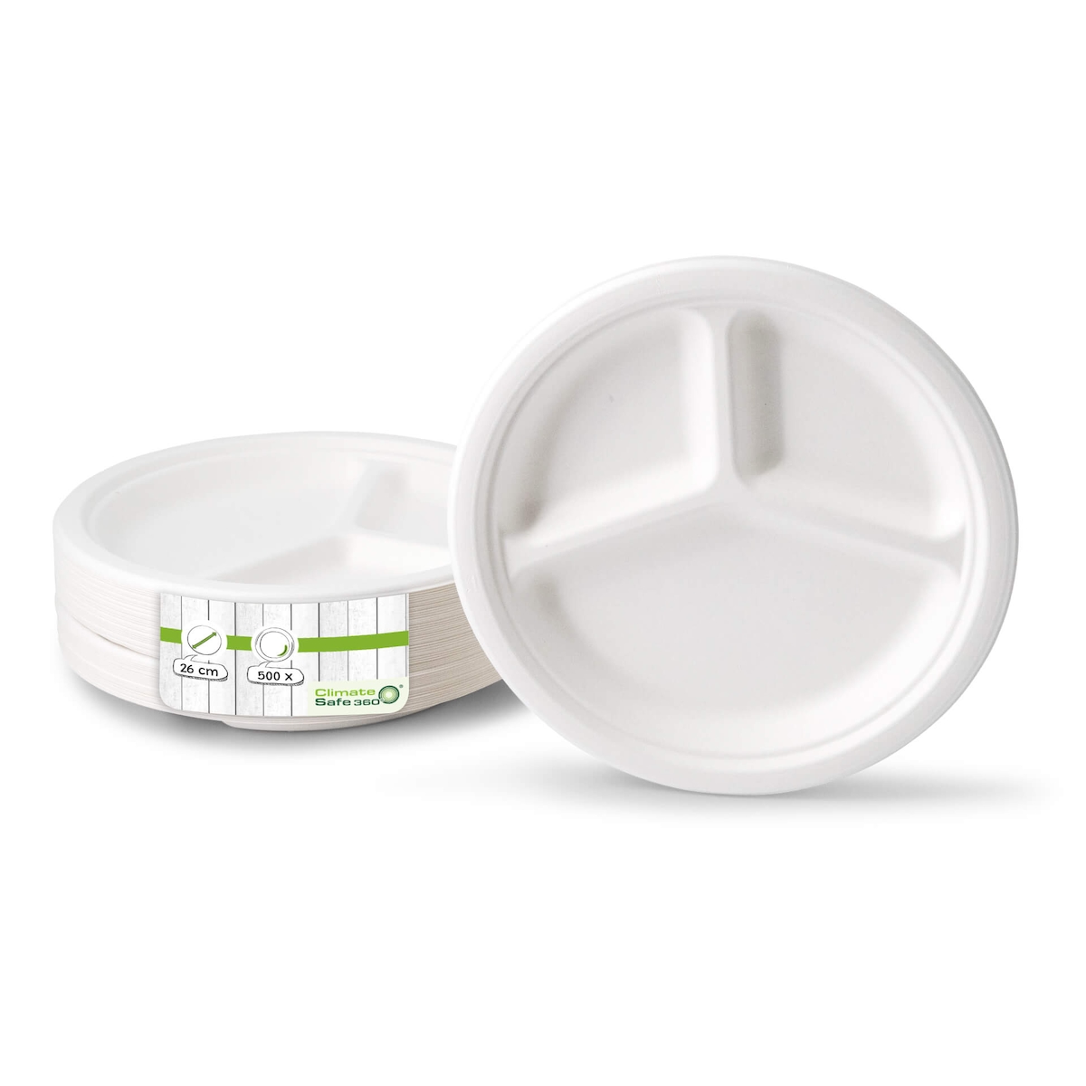greenbox - Menüteller aus Zuckerrohr Ø 26 cm, 3 Kammern, rund, 500 St.