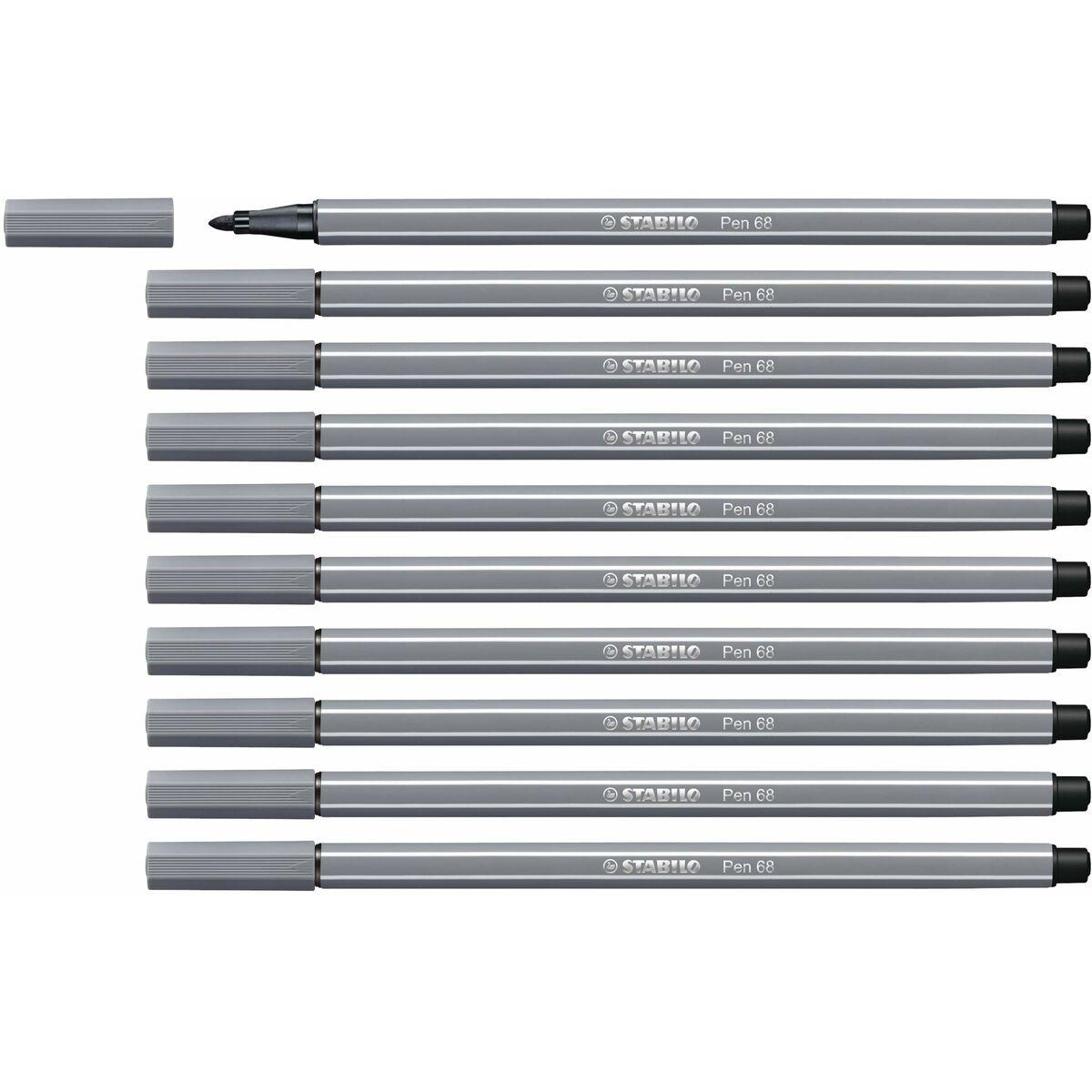 Stabilo Pen 68 markør - mørkegrå, 10 stk.
