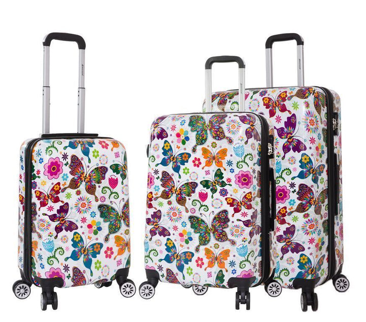 Infinity Leather Unisex Hard Shell 4 Wheel Butterfly Print Luggage Bag Suitcase Set fo 3 - Multicolour ABS - One Size