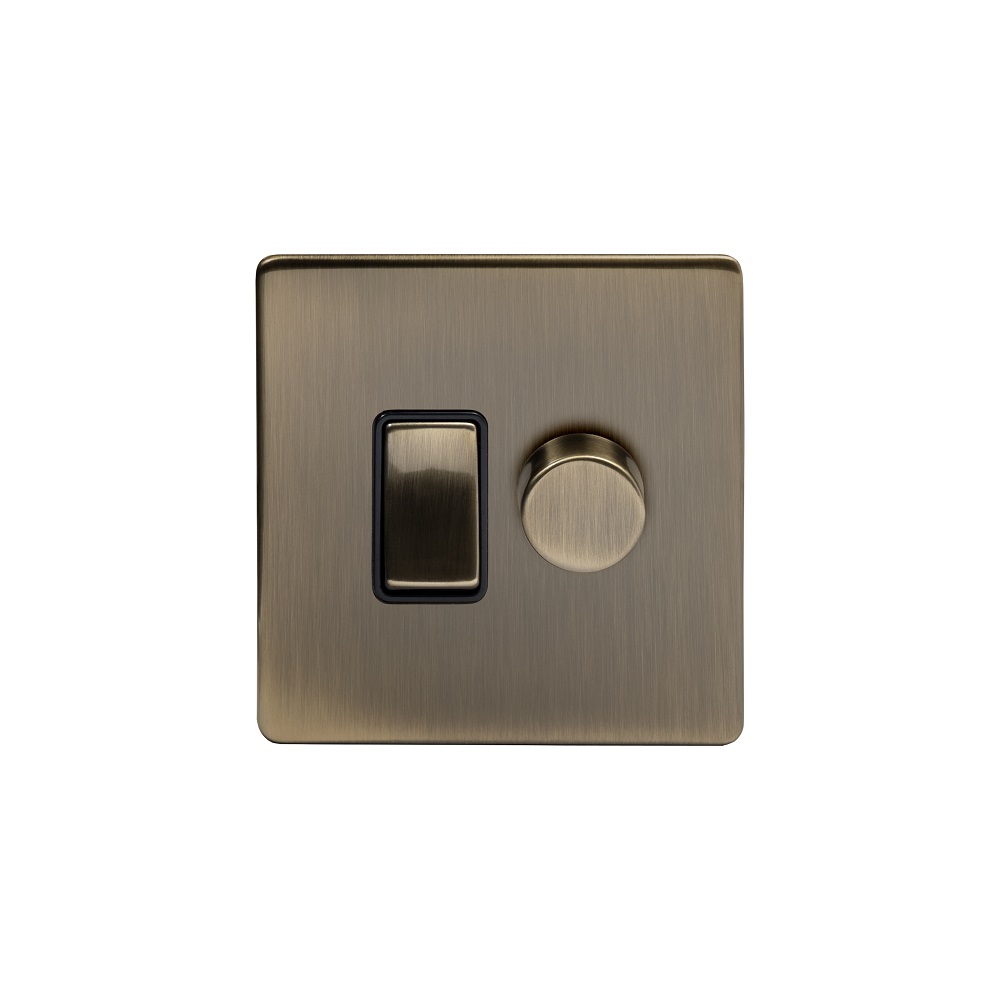 Soho Lighting Antique Brass Dimmer and Rocker Switch Combo (2-Way Switch & 2-Way Intelligent Dimmer) - Size: 86mm x 86mm