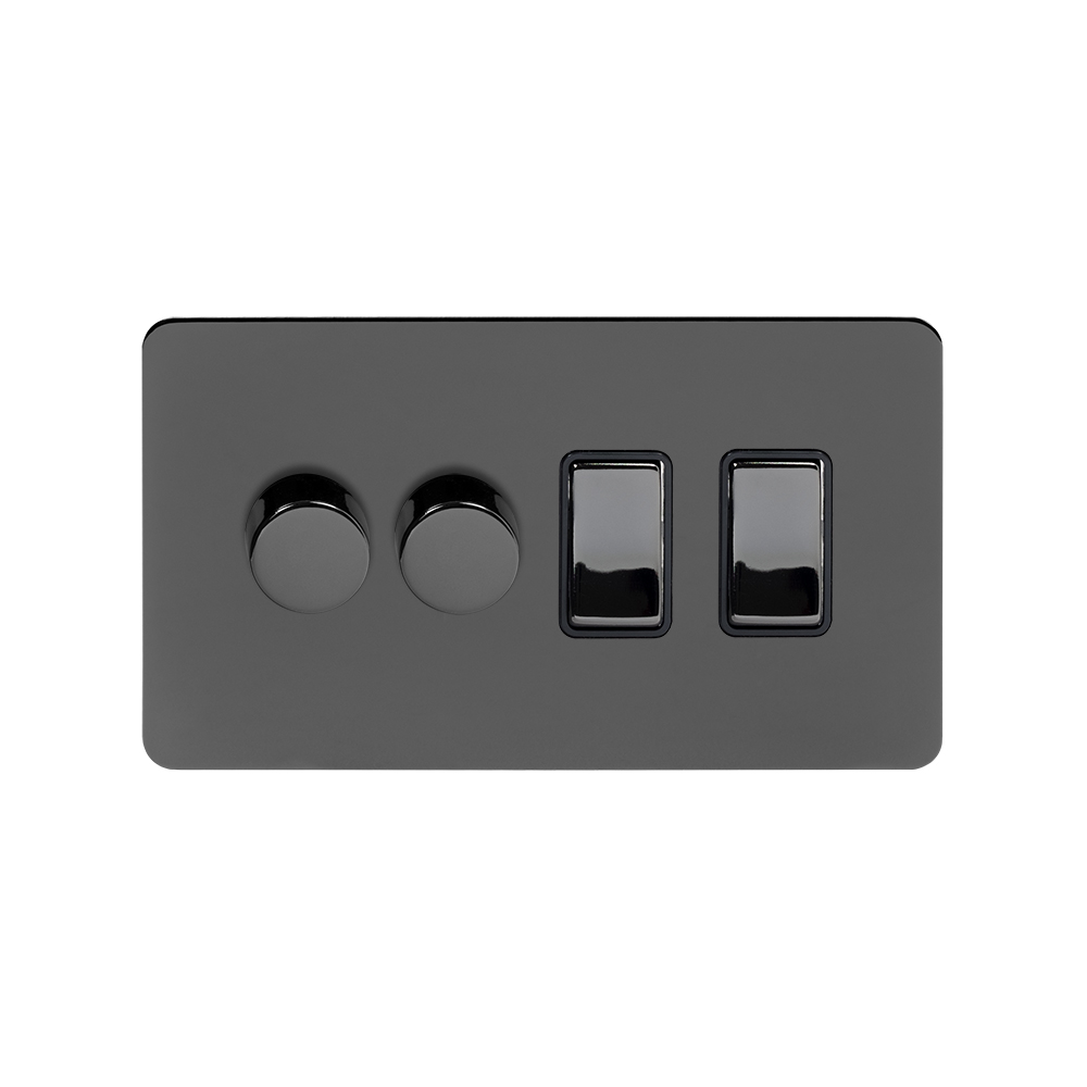 Soho Lighting Matt Black 4 Gang Dimmer and Rocker Switch Combo (2 x 2-Way intelligent Dimmer & 2 x 2-Way Switch)