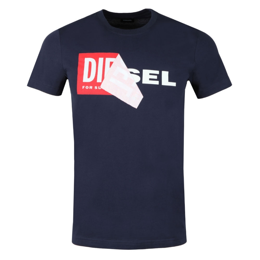 Diesel Mens T-diego-qa Peel Logo Navy T-shirt - Blue Cotton - Size Medium | Diesel Sale | Discount Designer Brands