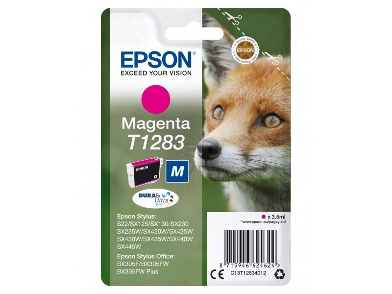 EPSON Cartuccia inkjet T1283 Serie Volpe, C13T12834012, Inchiostro DURABrite Ultra, Magenta, Pacco singolo