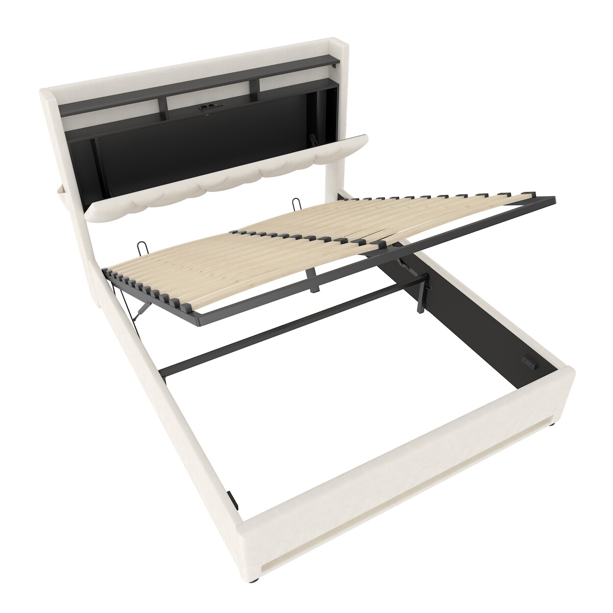 OKWISH Polsterbett Stauraumbett LED Beleuchtung USB Type-C Ladefunktion Hydraulik Stauraum Leinen PU-Leder Modernes Design 160x200 cm Beige