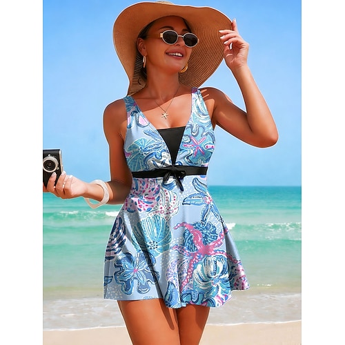 Damen Tankini 2-teilig Badeanzug mit Rock Rock Rückenfrei Urlaub Strandbekleidung Floral Grafik V-Ausschnitt Ärmellose Badeanzüge