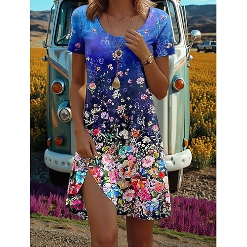 Per donna Mini Abito Vestito T-Shirt Vestito Estivo Abito a trapezio Abito Estivo Vacanza Casual Quotidiano Spiaggia Ferie Vestibilità regolare Floreale Grafico Mezza Manica Girocollo Blu Nero