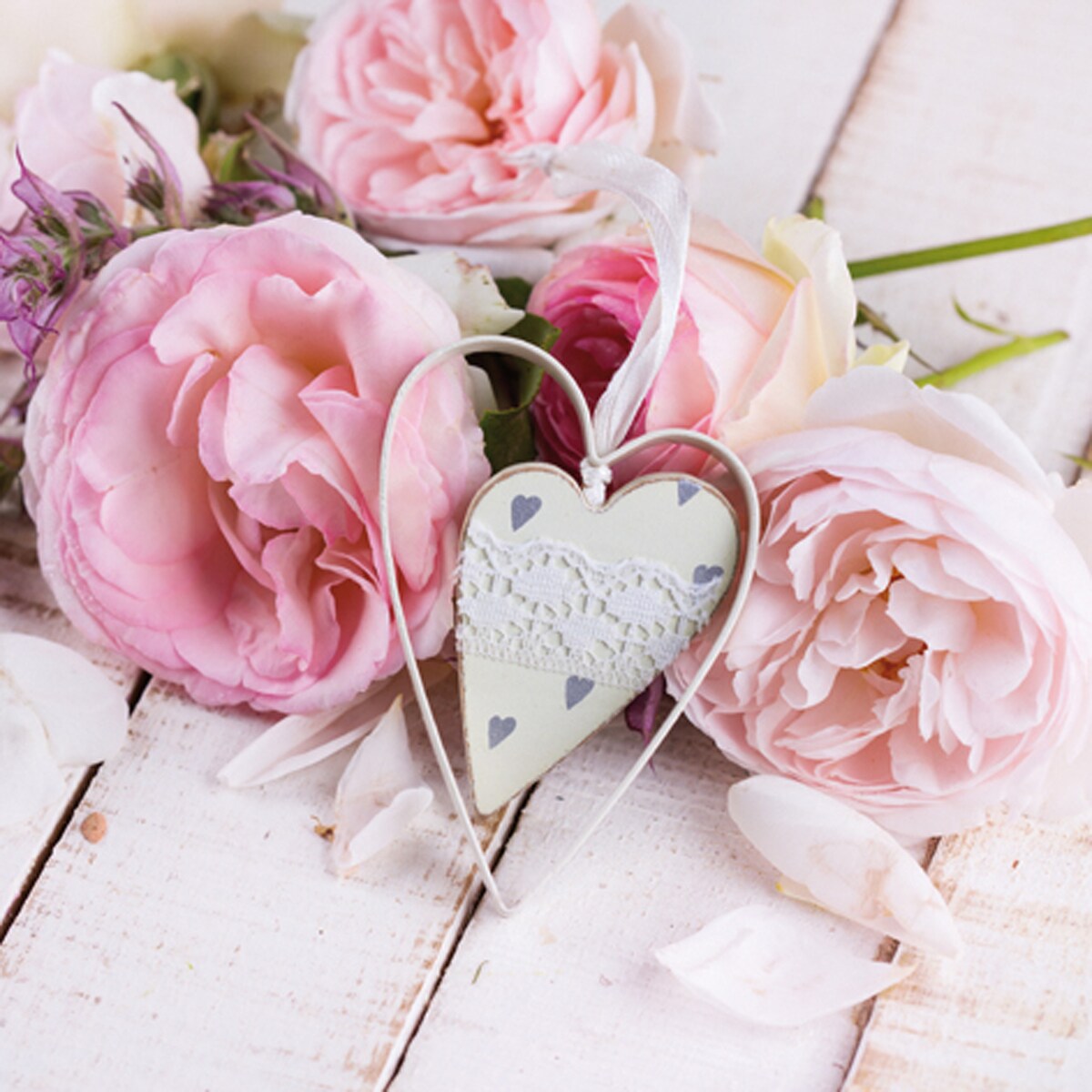 ti-flair 20 Servietten Papier 33x33cm 3-lagig - hochwertige Einweg Papierservietten Hochzeitsservietten Motivservietten Pfingstrosen Vintage Herz Rosa Weiß