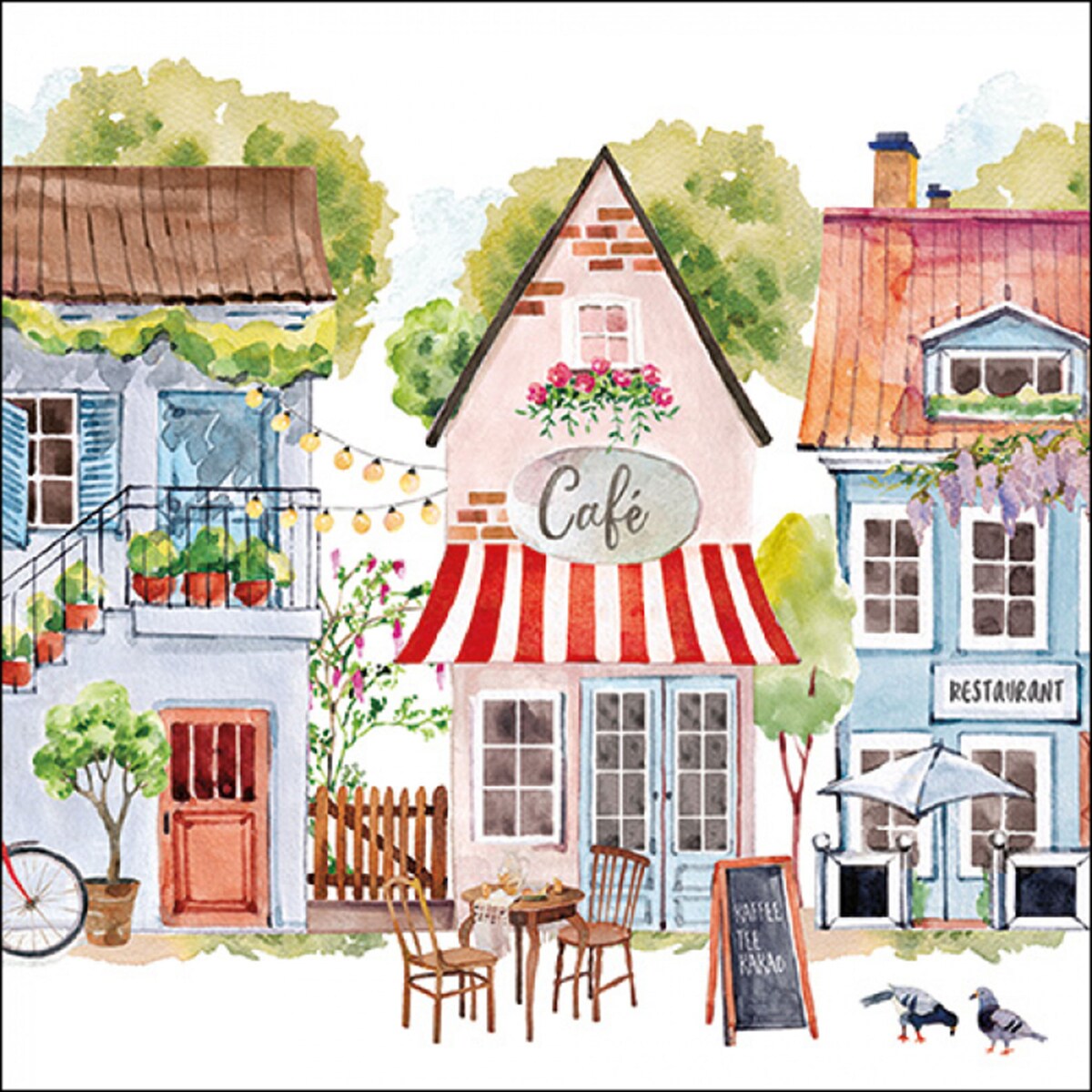 Ambiente 20 Servietten Papier 33x33cm 3-lagig - hochwertige Einweg Papierservietten Café Stadtmotiv Aquarell Tischdeko Frühling Sommer Landhausstil Vintage