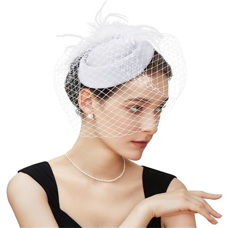 Fascinator Hat Veil Feather Fascinator Tea Party Bridal Wedding Veil Retro Hat Pillbox Derby Hats for Women