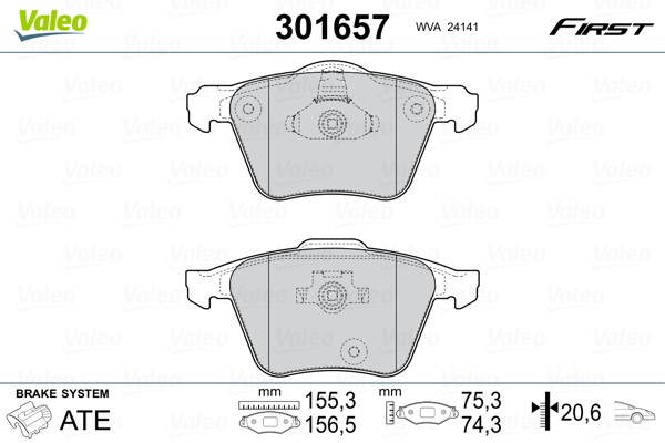 Jarrupalasarja, levyjarru, Etuakseli Valeo 301657 - volvo xc90 i, xc90 van i - OE 274331, 30769125, 31262705
