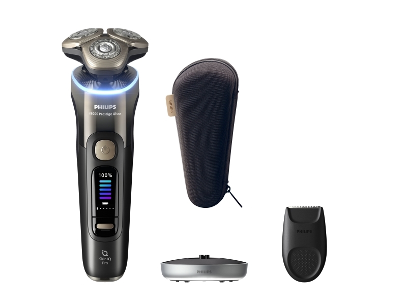 Philips i9000 Prestige Ultra XP9405/11 Sähköparranajokone märkä- ja kuivaparranajokone SkinIQ Pro -ominaisuudella, pyörivä parranajokone, musta, SkinIQ Pro, LCD, GroomTribe, Android, iOS