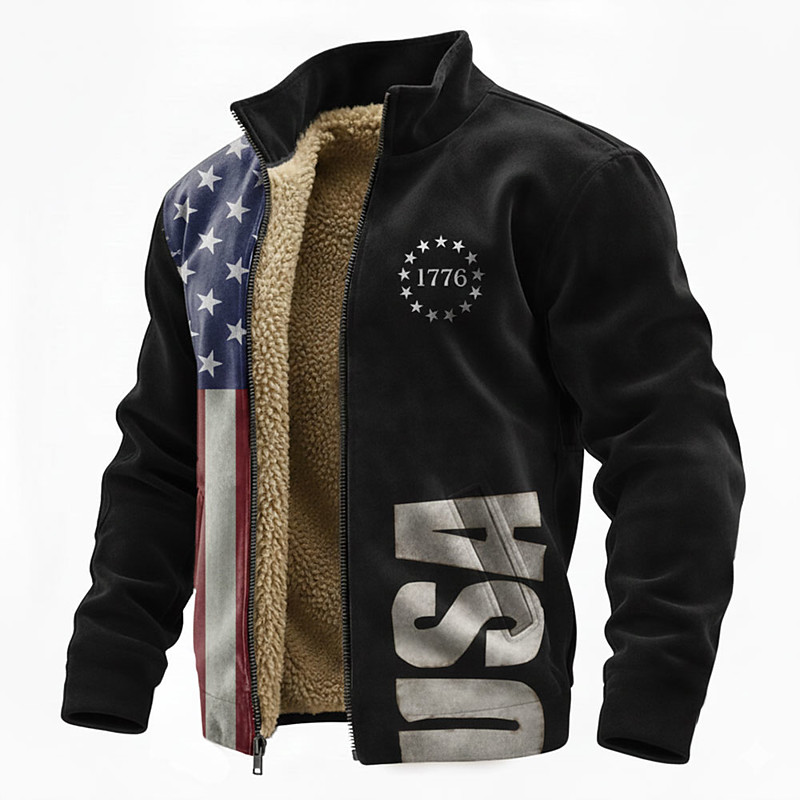 America's 250th Anniversary Men's American US Flag Fleece Jacket Sweatshirt Fashion Daily Simple Casual Stand Collar Zip Outdoor Vacation Gift Going out Blue Black Green Gray Pocket Front Zipper Fall