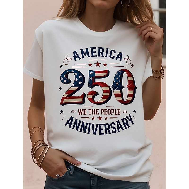 American 250th Women's T Shirt Graphic Independence Day American Flag Vintage Stylish Classic Short Sleeve Crew Neck Round Neck Regular Tops Daily Weekend Print White Summer Spring Fall