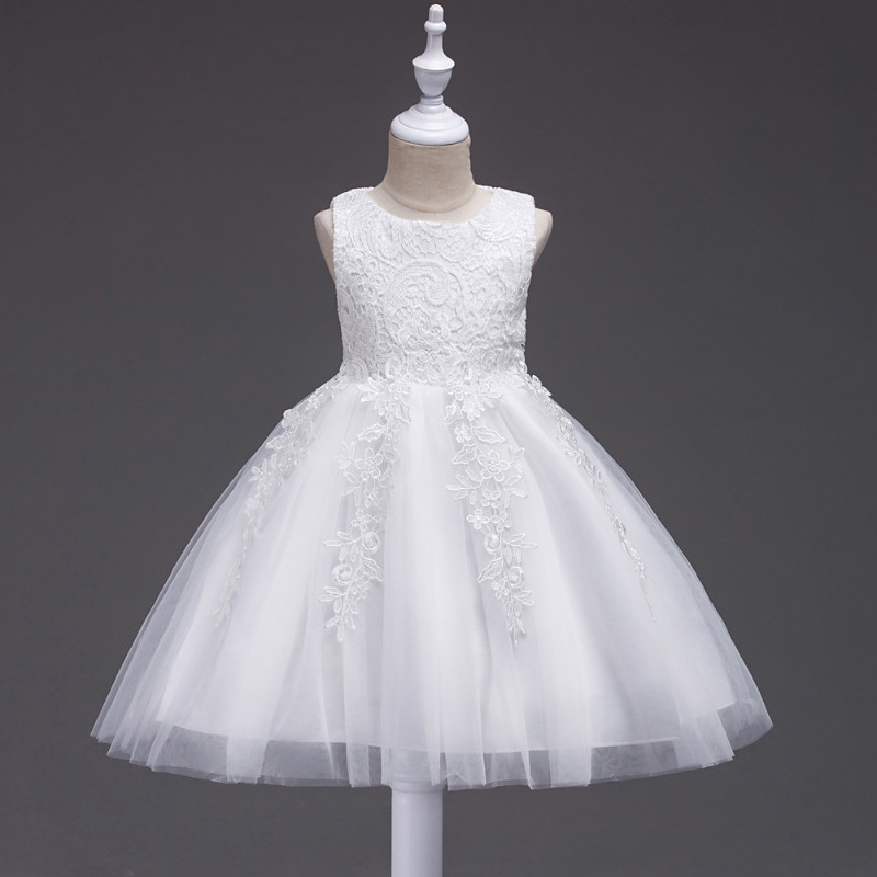 Flower Girl Dress Girls' Dress Evening Gown Party Dress Wedding Party Birthday Party Princess Sweet Lace Mesh Floral Sleeveless Crew Neck White Pink 4-13 Years