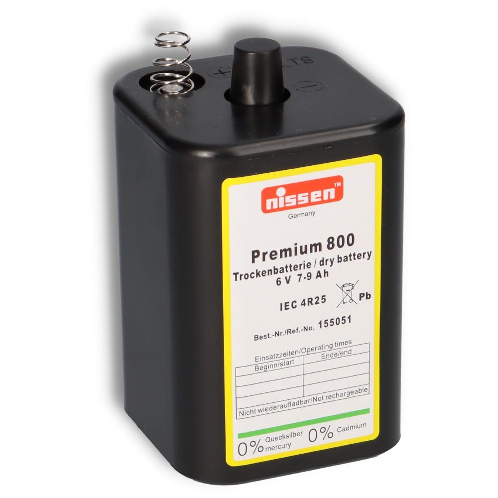 Akkuman Nissen 4R25 Premium 800 - 6V / 7-9Ah Trockenbatterie - ohne Quecksilber und Cadmium