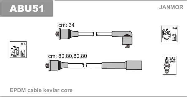 Sytytysjohtosarja Janmor ABU51 - audi a4 b5, a4 b5 avant - OE N10204402, N10243611
