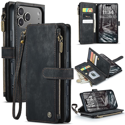 Handy Hülle Handyhüllen Für iPhone 17 Pro Max 17 Air 17 Brieftaschenhülle Reisverschluss mit Trageriemen Ständer TPU PU-Leder