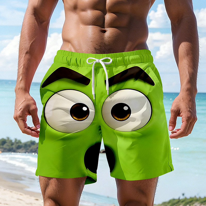 Men's Optical Illusion 3D Cartoon Angry Face Swim Trunks Swim Shorts Board Shorts Mid Waist Hawaiian Funny Beach Vacation Wear Side Pockets Mesh Lining Elastic Drawstring Waist Designer Clothing