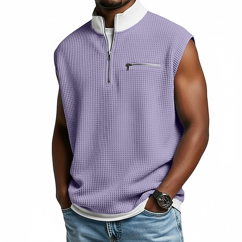 Per uomo Canotta a nido d'ape Canotta Maglietta smanicata Canottiera Senza Maniche Maglione Mezza zip Estate Primavera Semplice Moda Designer Casual Tasca con cerniera All'aperto Palestra Uscire Nero