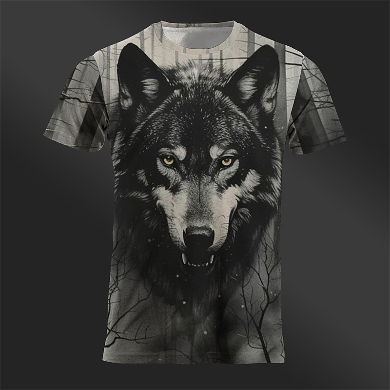 Men's Graphic Animal Wolf T Shirt Tee Top Short Sleeve T shirt 3D Print Crew Neck Shirt Designer Retro Vintage Casual Sports Outdoor Holiday Going out Khaki Dark Gray Gray Spring Summer Clothing