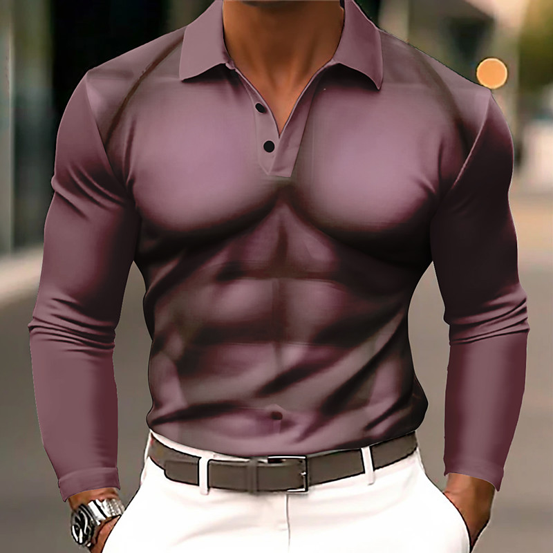 Men's Simulation Polo Long Sleeve Polo Shirts Lapel Casual Street Daily Wear 3D Print Buttons Spring Fall Winter Dark Brown Green Gray