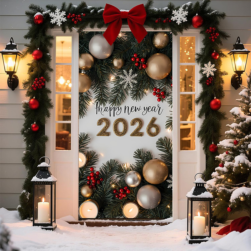 New Year Posters Door Cover Outdoor Banners Happy New Year 2026 Cute 3D Party Dorm Teens Room College Dorm Guys Man Cave Frat Bedroom Shooting Backgrounds Home Decor