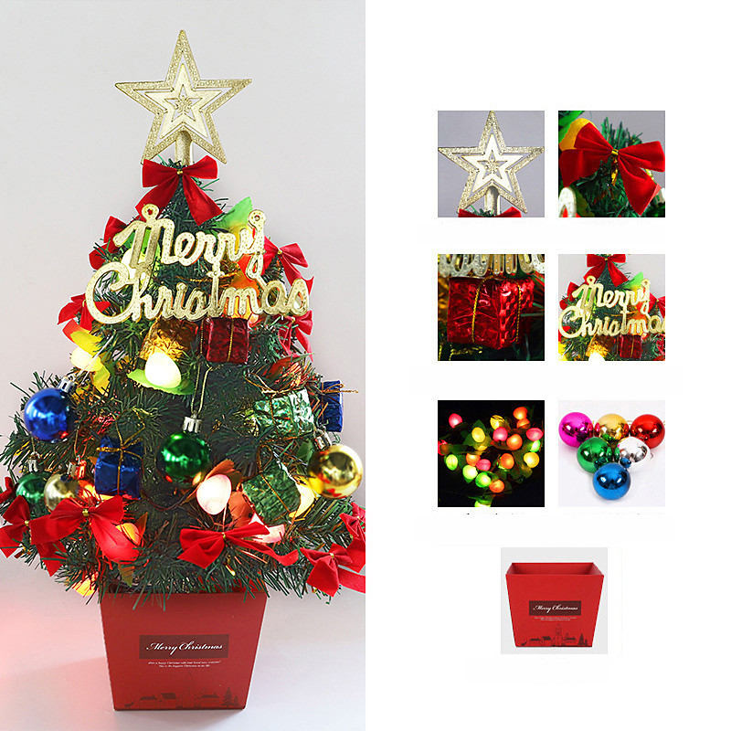 Mini DIY Christmas Tree Ornament 50-60cm Desktop Christmas Tree Decor Xtmas Tree Ornament With Lights Gold Red Suit Decorate Christmas Lights