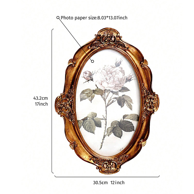 Vintage Palace Style Oval Decorative Frame – Resin Antique Look Photo Frame for Desktop Decor Photography Props