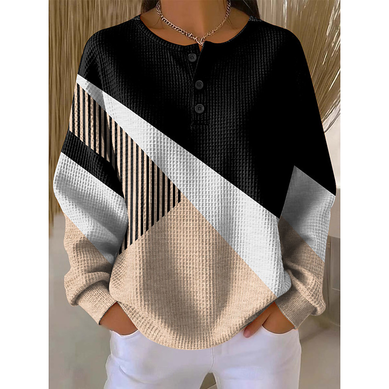Women's Hoodies Graphic Geometric Color Block Fashion Casual Print Long Sleeve Crew Neck Round Neck Regular Tops Casual Street Buttons Blue Purple Green khaki Fall Winter