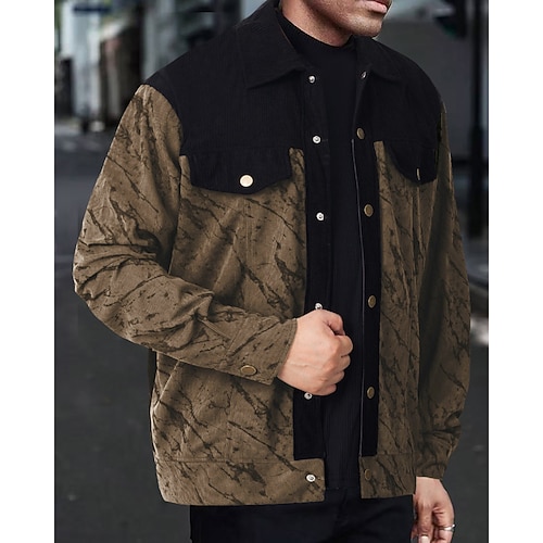 Herren Leichte Jacke Cordjacke Freizeitjacke Urlaub Täglich Warm Tasche Frühling Herbst Farbblock Mode Klassisch Revers Regulär Khaki Armeegrün Dunkelgray Jacken