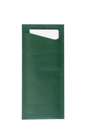 Prime Guest Bestecktasche Prime Fit in Dunkelgrün 85 x 190 mm, mit 2-lagiger Tissue-Serviette in Weiß - 500 Stück