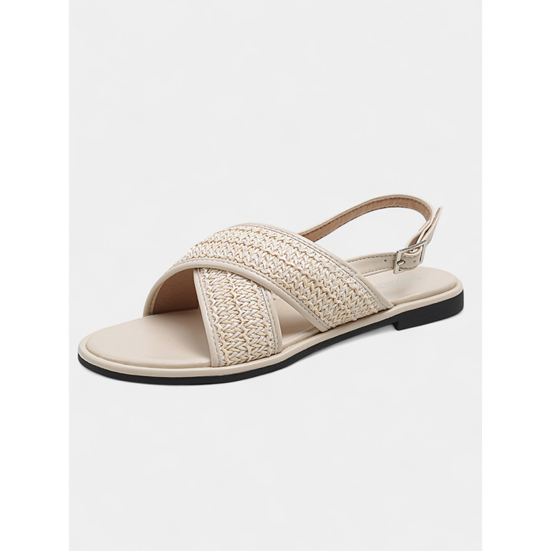 Women's Woven Cross-Strap Flat Sandals – Boho Casual Slides for Summer Strolls Romantic Daytime Dates