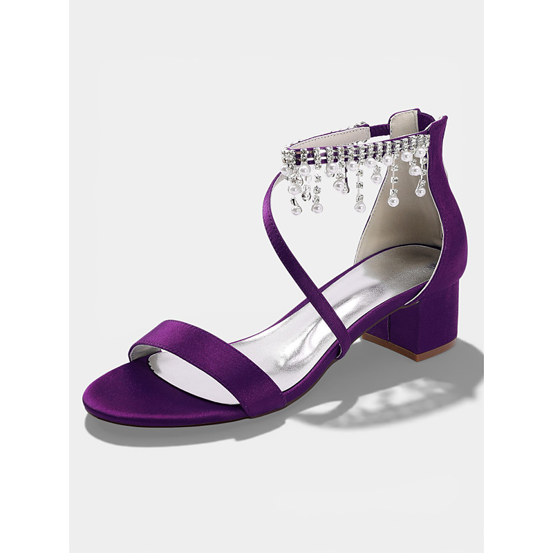 White Pearl Bridal Wedding Sandals for Bride, Low Block Heel Ankle Strap Shoes for Garden Formal Weddings