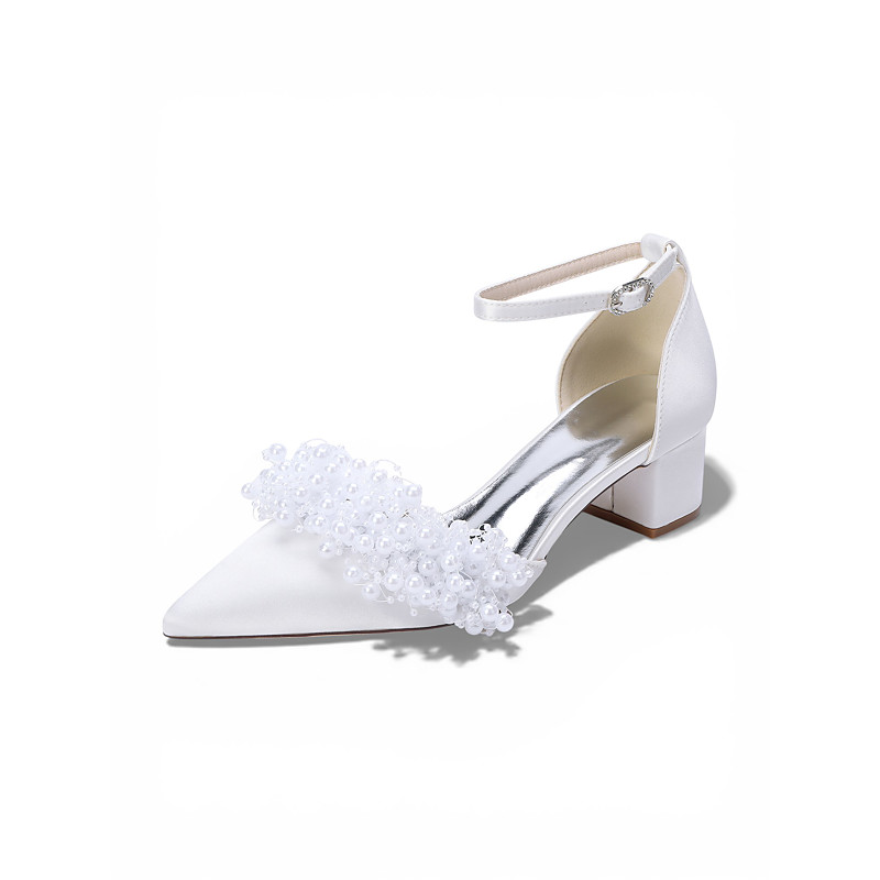 Women's Ivory Pearl Embellished Ankle Strap Heels, Elegant Pointed-Toe Bridal Shoes for Modern City Wedding