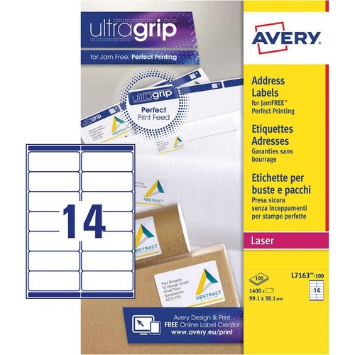 AVERY Zweckform L7163-100 Adressetiketten DIN A4 Weiß 99,1 x 38,1 mm 100 Blatt à 14 Etiketten