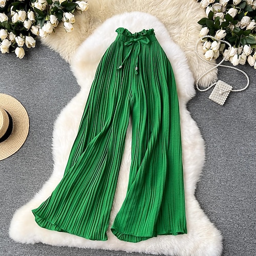 Per donna Gamba larga Chinos Casual Lunghezza intera Naturale Semplice Pieghettato Gamba larga Comodo Traspirabilità Casual Quotidiano Nero Rosa Verde Chiaro Blu Primavera Autunno Vestibilità comoda