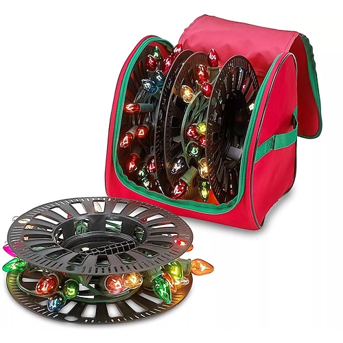 Borsa portaoggetti per luci di Natale, organizer per luci di Natale in tessuto Oxford, borsa portaoggetti per luci natalizie per organizzare i cavi delle luci senza grovigli, borsa con cerniera