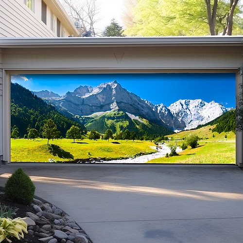 Wasserdichter Outdoor Vorhang Sichtschutzvorhang für den Außenbereich, Schiebevorhänge für die Terrasse, Pergola-Vorhänge mit Ösen, 3D-Berglandschaft für Pavillon, Balkon, Veranda, Party, 1 Panel