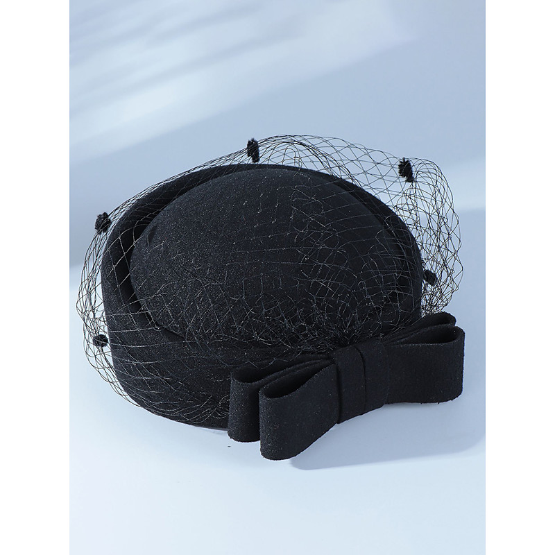 Women's Christmas Party Hat - Faux Wool, Bow and Net Design, Multiple Colors for Holiday Celebrations, Perfect for Festive Events and Winter Fashion