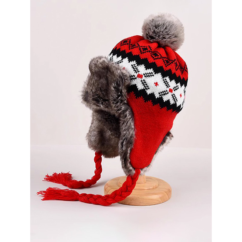 Winter Outdoor Knit Beanie for Women Fair Isle Style Warm Hat Ear Flap Plush Lined Ski Cap Cold Weather Protection Cute Face Slimming Winter Headwear