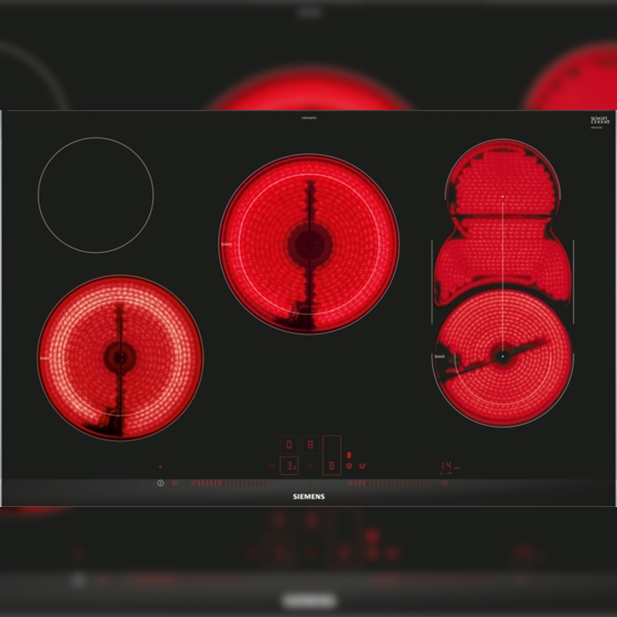 Siemens iQ500 ET875LMP1D, Elektro-Kochfeld, 80 cm, Schwarz, Mit Rahmen aufliegend