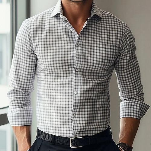 Herren Geometrisch Karo / Karomuster Hemd Knopfhemd Lässiges Hemd Langarm Business-Casual Outdoor Alltagskleidung Frühling Herbst Umlegekragen 3D-Druck Hemden mit Kragen Blau Grau