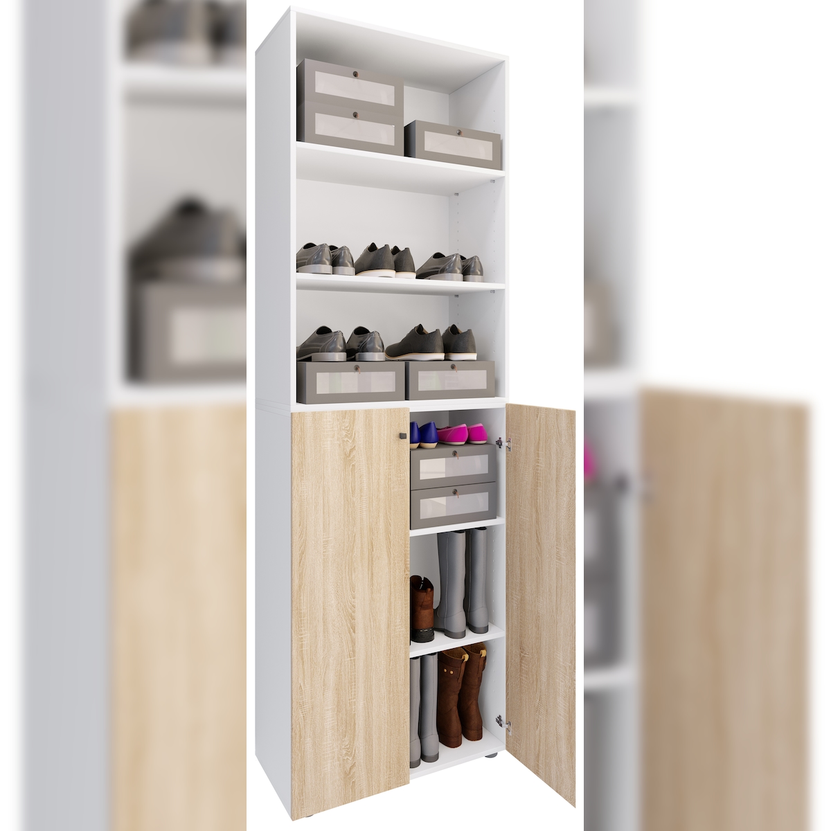 VCM Schuhschrank Lona Weiß / Sonoma-Eiche H. 220 x B. 70 x T. 40cm